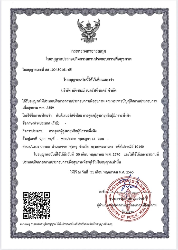 รับรองโดยกรมสนับสนุนบริการสุขภาพ กระทรวงสาธารณสุข